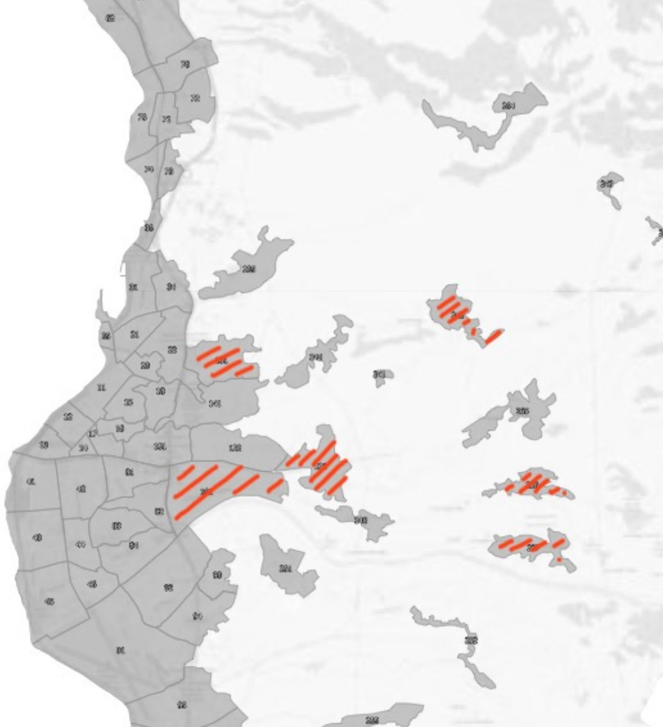 A ben guardare ( aree rosse) se la Circoscrizione dovesse comprendere i territori ed i quartieri così come definiti nel Masterplan la gestione amministrativa appare molto complessa ed disordinata.
